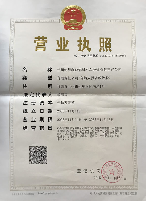 蘭州乾得利雙燃料汽車改裝有限責任公司 電話:0931-2344726 13919176564